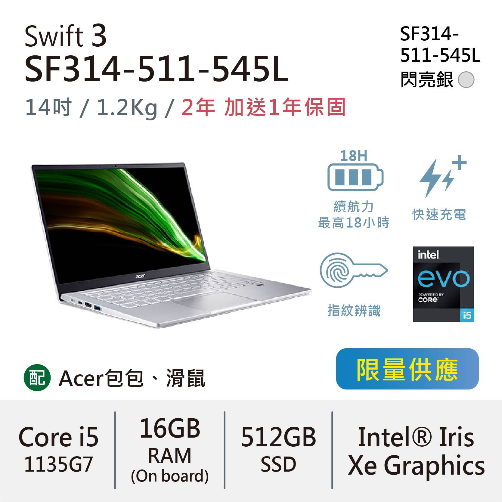 SF314-511-545L 閃亮銀 (i5-1135G7)