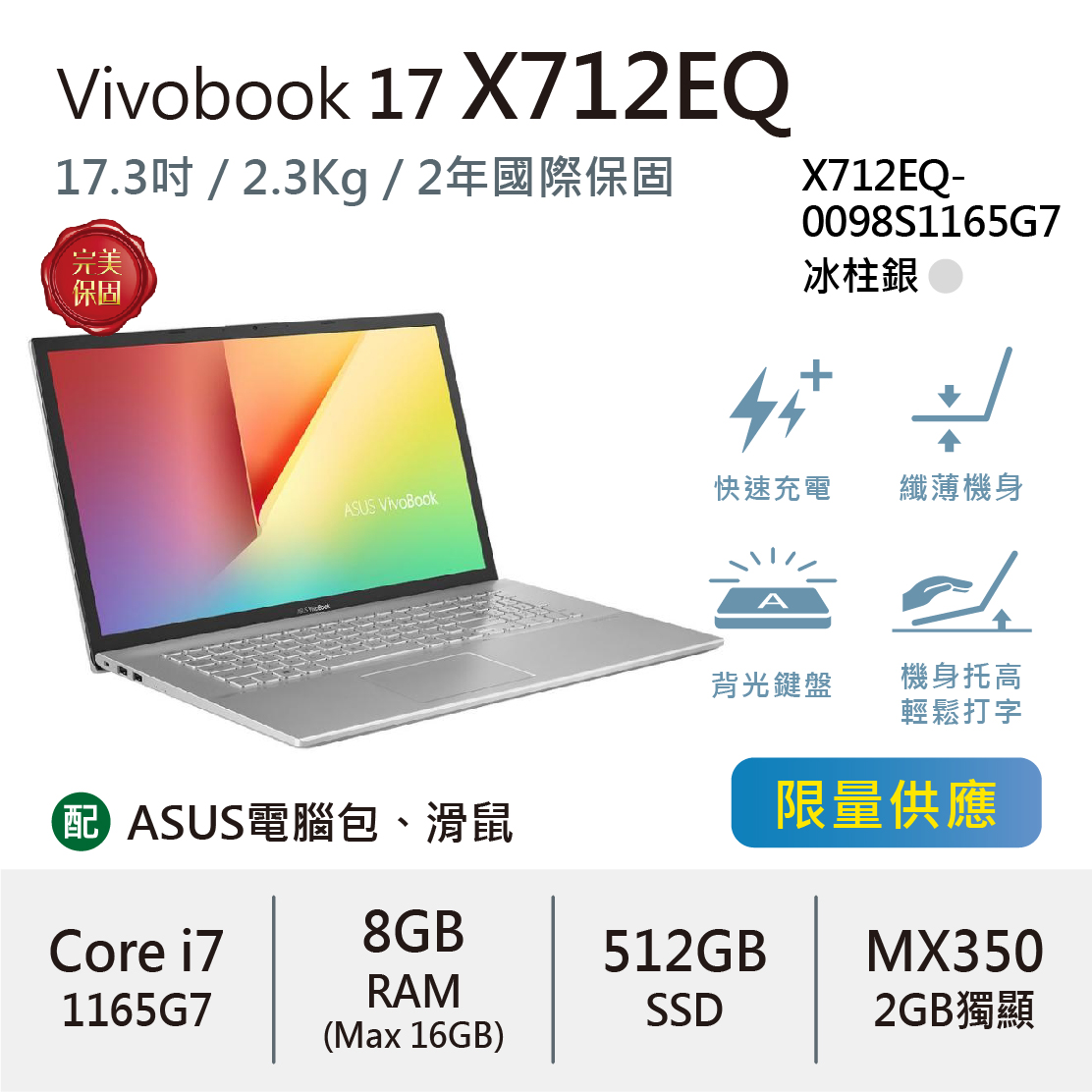 Vivobook 17 X712EQ 冰柱銀 (i7-1165G7)