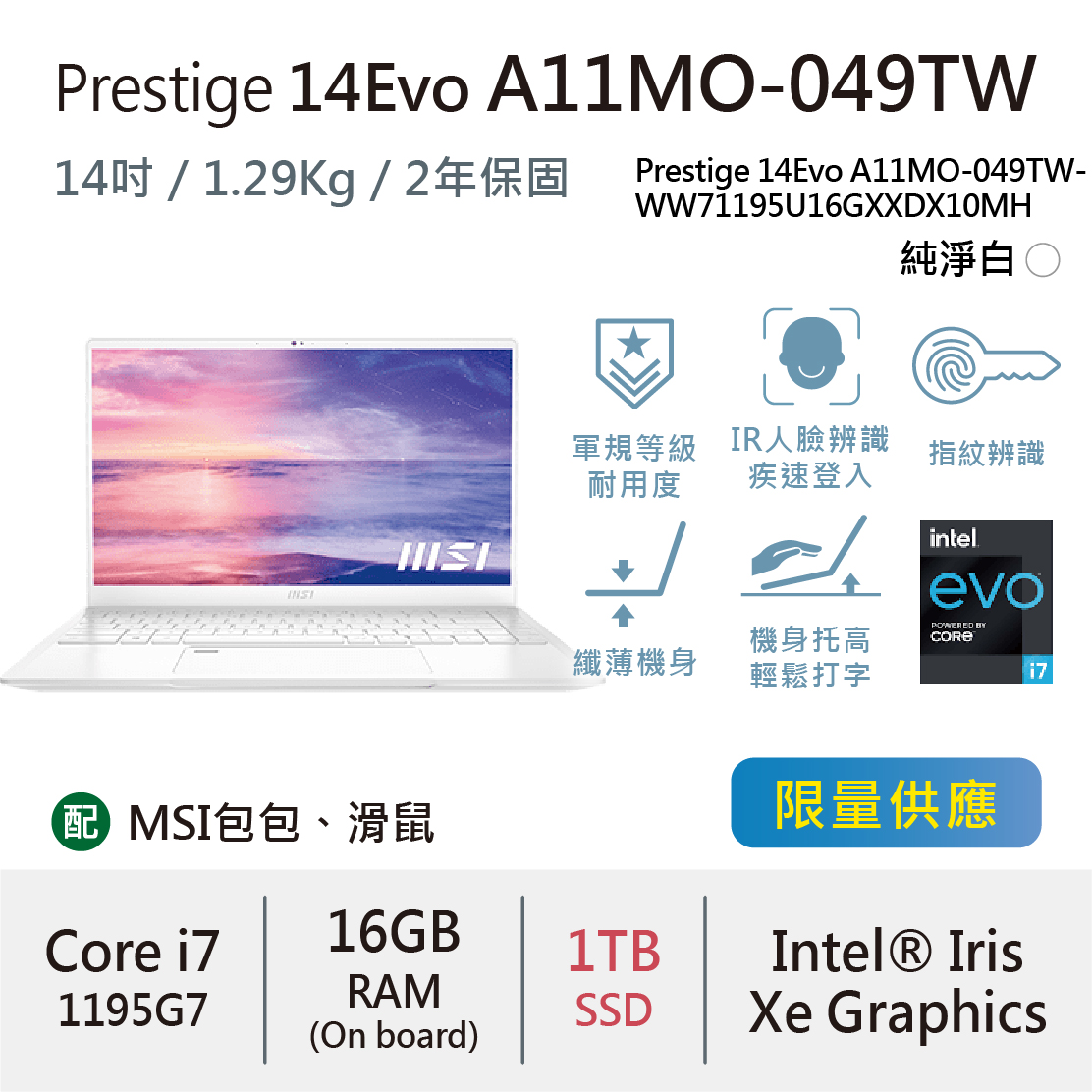 Prestige 14Evo A11MO-049TW 純淨白 (i7-1195G7)