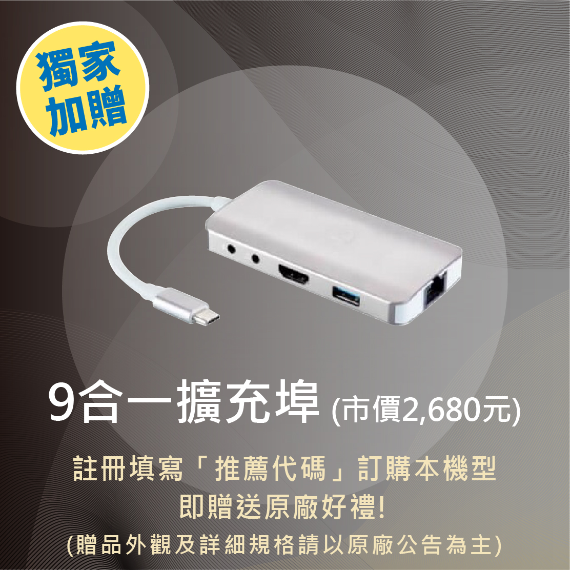 配件 : MSI包包 、MSI滑鼠、9合1連接埠