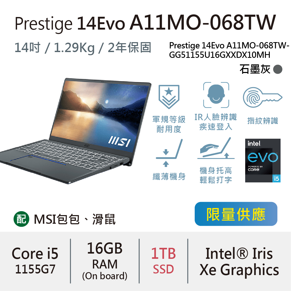 產品型號 : Prestige 14Evo A11MO-068TW-GG51155U16GXXDX10MH